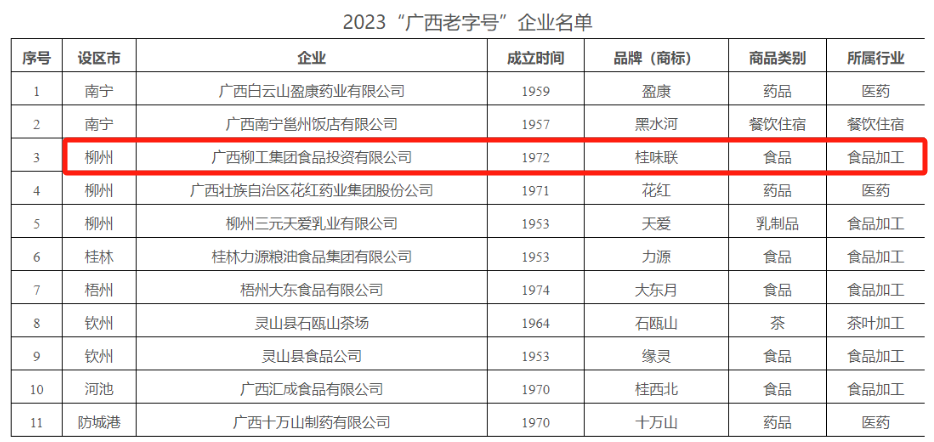 近日,廣西商務(wù)廳公示了2023“廣西老字號(hào)”認(rèn)定評(píng)審結(jié)果,廣西柳工集團(tuán)食品投資有限公司(下稱(chēng)食品公司)“桂味聯(lián)”品牌入選。