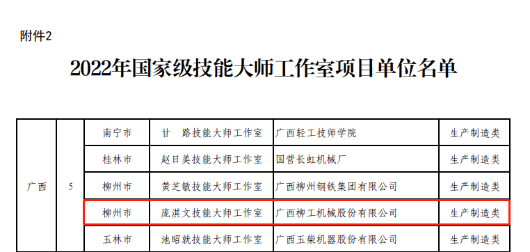 近日,2022年國家級(jí)高技能人才培訓(xùn)基地和技能大師工作室項(xiàng)目單位備案名單公布,柳工龐淇文技能大師工作室獲評(píng)國家級(jí)技能大師工作室。至此,柳工已有4個(gè)國家級(jí)技能大師工作室。
