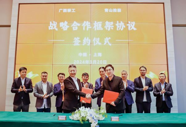 3月20日,廣西柳工機(jī)械股份有限公司與青山實(shí)業(yè)簽訂了戰(zhàn)略合作框架協(xié)議。廣西柳工機(jī)械股份有限公司黨委書記、董事長、首席執(zhí)行官曾光安,副董事長、執(zhí)行董事黃海波,高級(jí)副總裁羅國兵,青山實(shí)業(yè)董事局主席項(xiàng)光達(dá),永青集團(tuán)總裁伍華弟,永青科技集團(tuán)董事長胡曉東、副總裁馮挺等出席簽約儀式。