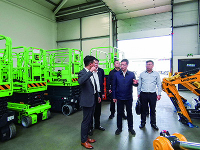 代表團(tuán)一行先后走訪了柳工英國公司的工廠改裝車間、設(shè)備儲存車間以及配件中心,詳細(xì)聽取了公司工作匯報(bào),了解了柳工在英國的發(fā)展歷程、英國的市場環(huán)境、柳工的主營產(chǎn)品線,以及公司日常運(yùn)營、網(wǎng)點(diǎn)建設(shè)、客戶服務(wù)及技術(shù)支持等方面情況。柳工英國公司負(fù)責(zé)人詳細(xì)匯報(bào)了在英國2035年碳中合目標(biāo)的環(huán)保大背景下,柳工電動產(chǎn)品在英國的上市情況和重點(diǎn)推廣策略,主要介紹了裝載機(jī)、挖掘機(jī)、高空作業(yè)平臺等綠色電動產(chǎn)品的產(chǎn)品優(yōu)勢與機(jī)會。