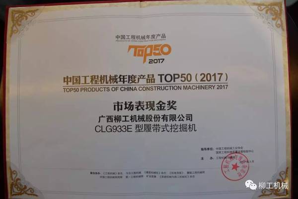 在昨天剛剛落下帷幕的“中國工程機(jī)械年度產(chǎn)品TOP50(2017)”頒獎(jiǎng)典禮上,柳工多款產(chǎn)品憑借優(yōu)異的產(chǎn)品性能,卓越的市場口碑、周到的售后服務(wù),包攬多項(xiàng)大獎(jiǎng),其中CLG933E履帶挖掘機(jī)、CLG862H輪式裝載機(jī)分別斬獲市場表現(xiàn)金獎(jiǎng)和技術(shù)創(chuàng)新金獎(jiǎng)。