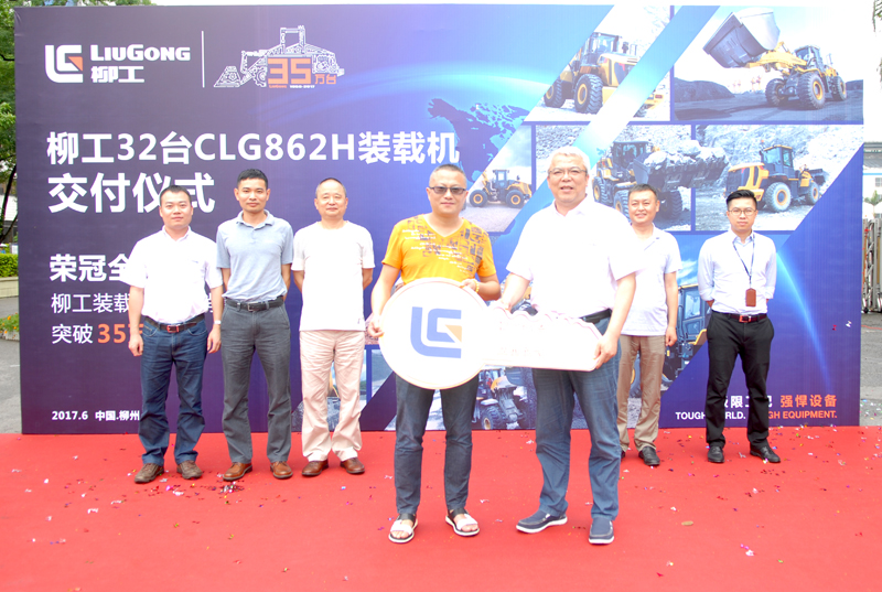 6月20日,公司舉行交機(jī)儀式,32臺(tái)CLG862H裝載機(jī)正式交付成都鐵路局(如下圖)。