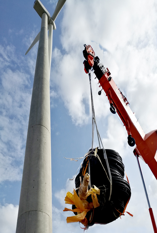 風(fēng)電是一種清潔的可再生能源,近年來世界各國(guó)均大力扶持并加快發(fā)展風(fēng)電,全球各大風(fēng)電主機(jī)廠商也在大力搶占各國(guó)優(yōu)質(zhì)風(fēng)電資源。印度班努爾風(fēng)塔體外索項(xiàng)目的成功開發(fā),為歐維姆公司拓寬海外風(fēng)電市場(chǎng)打下了基礎(chǔ)。下圖為風(fēng)電設(shè)備的吊裝。