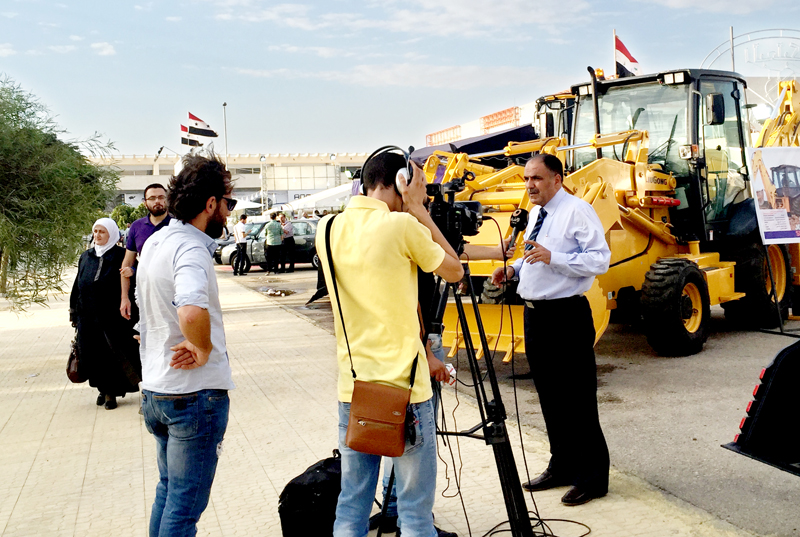 我公司展區(qū)有300多平方米,分別展出裝載機、挖掘機、滑移、兩頭忙、叉車各一臺。爆炸事件平息后,絡繹不絕的普通觀眾,大馬士革的政府官員、專業(yè)客戶紛紛前來我公司展區(qū)觀摩了解產(chǎn)品情況。從他們淡定從容的面部,可以看出敘利亞人民盼望和平及重建家園的強烈愿望。