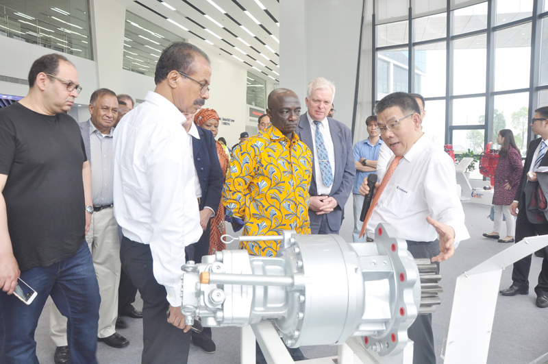 曾光安用流利的英語向來訪貴賓表示熱烈的歡迎,并對(duì)柳工發(fā)展大事記、柳工技術(shù)研發(fā)平臺(tái)建設(shè)及柳工一帶一路的海外業(yè)務(wù)布局等方面做了精彩分享。曾光安說,希望未來能與來訪的大使所在國(guó)家有更多的合作。來訪的貴賓全程全神貫注,認(rèn)真聆聽,無不對(duì)柳工的快速發(fā)展步伐表示贊嘆。