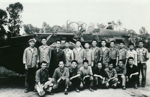 1971年,Z450裝載機(jī)試制小組成員在產(chǎn)品前留影。
