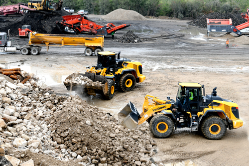CLG890H、CLG856H裝載機在達拉斯砂石工廠聯(lián)合作業(yè)