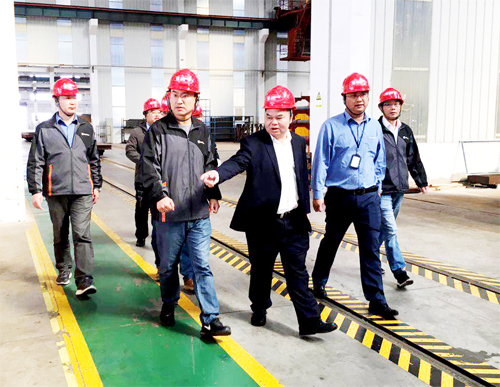 鄭津(右三)考察建機(jī)公司生產(chǎn)現(xiàn)場