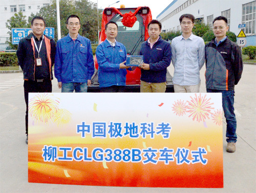 早在今年年初,江蘇柳工獲悉南極科考隊需要采購一批工程機械設備,結合南極環(huán)境、以及科考隊應用在直升機里作業(yè)等需求,向科考隊推薦了“原地轉向,機動靈活;快換裝置,一機多用”的CLG388B。經過江蘇柳工的積極協調,CLG388B于9月中標。