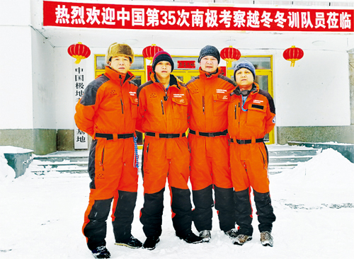 陳波(左一)、韋勇豪(左二)、宋世杰(右一)參加越冬訓練時留影